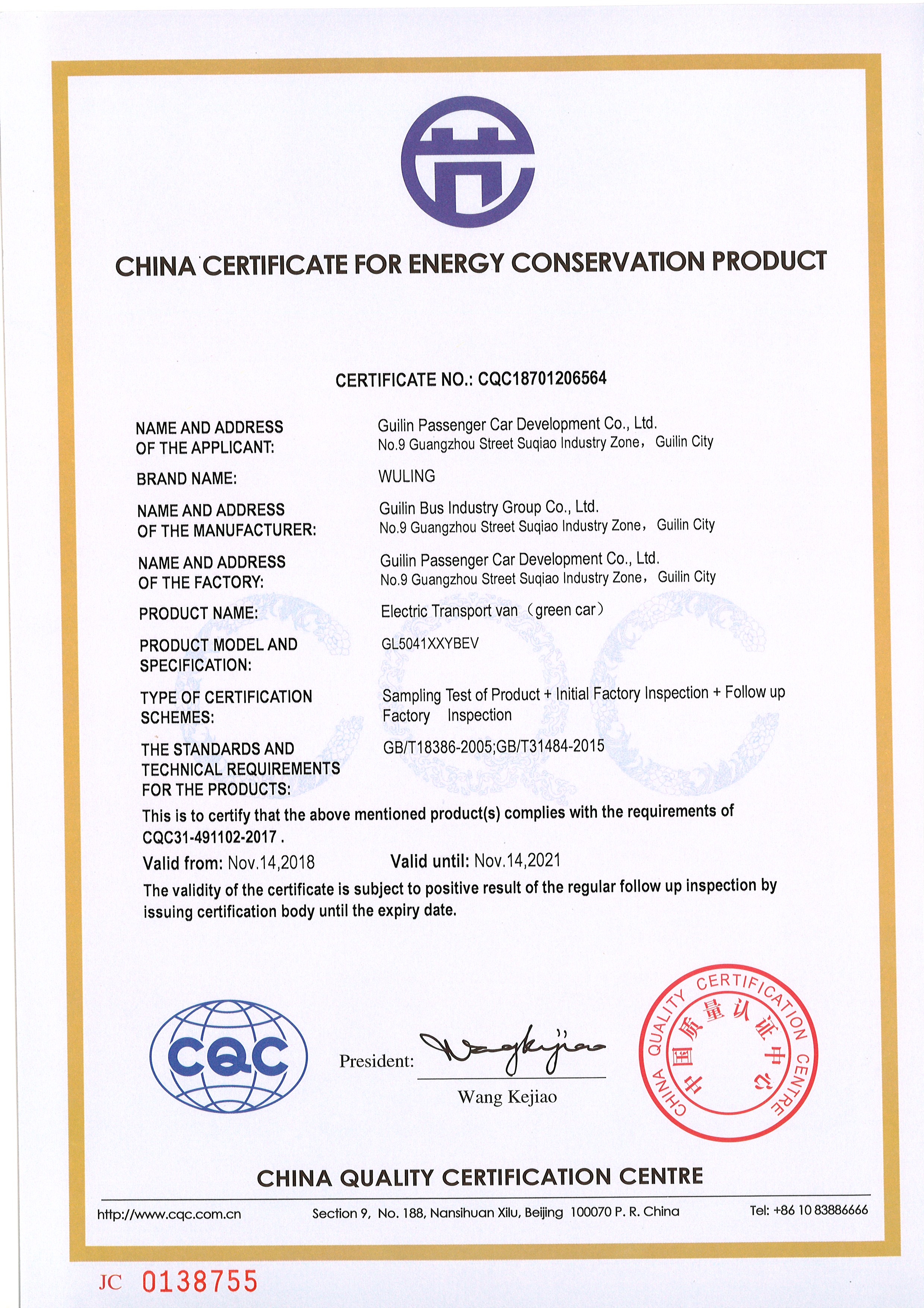 一款新能源城市客車、一款新能源廂式物流車通過中國質(zhì)量認證中心檢測,順利取得中國節(jié)能產(chǎn)品認證證書,也憑此進入了國家政府采購管理目錄中。