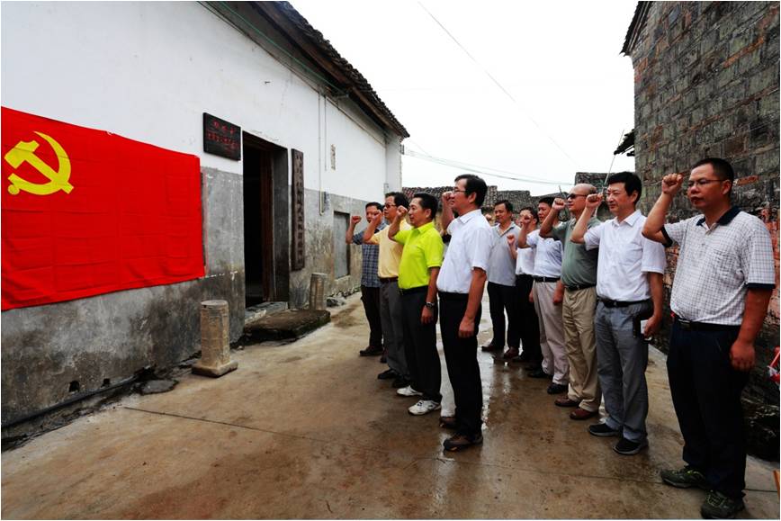 (圖為黨委中心組成員到柳城縣愛國教育基地——桂黔邊人民保衛(wèi)團柳城武工隊活動舊址現(xiàn)場學(xué)習(xí))