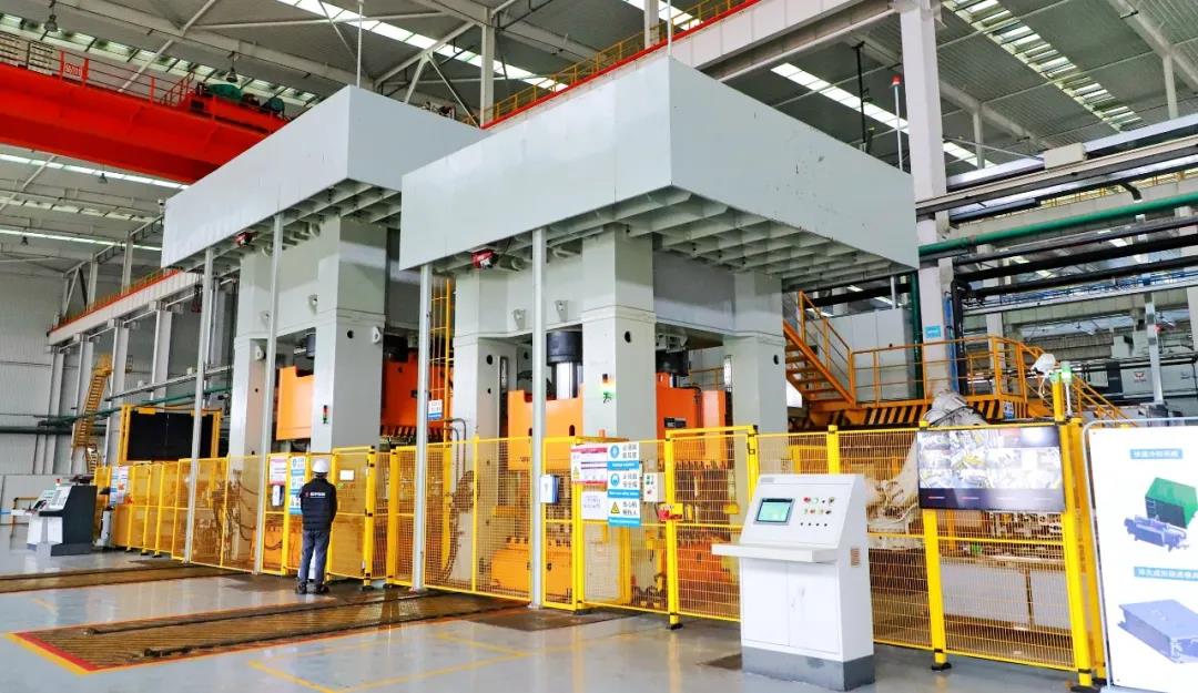 由汽車集團建成的這條超高強度鋼管熱氣脹成形生產(chǎn)線坐落在企業(yè)柳東乘用車生產(chǎn)基地內(nèi),由模具內(nèi)管材電阻快速加熱系統(tǒng)、熱氣脹高壓氣體與緊密系統(tǒng)、快速冷卻系統(tǒng)組成,可生產(chǎn)汽車管類結(jié)構(gòu)零部件,生產(chǎn)節(jié)拍可達72JPH,年產(chǎn)能可達48萬件以上;采用超高壓氣壓力密封伺服控制,重復定位精度≤0.2mm,超高壓動密封不泄露,產(chǎn)品合格率和整線仿真率100%,具有節(jié)能減重、節(jié)拍提升、性能提升、較低成本等優(yōu)勢;將加熱、成形、冷卻三個過程融合在一套模具中完成,通過雙腔的形式將加熱與成形冷卻拆分為兩個工位,極大地提高了零件的生產(chǎn)節(jié)拍,實現(xiàn)扭力梁生產(chǎn)節(jié)拍小于50s。