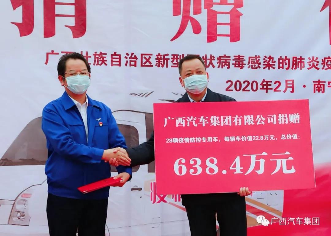 2月28日,廣西汽車集團(tuán)再次扛起國企擔(dān)當(dāng),進(jìn)行第三批疫情捐贈,向自治區(qū)新冠肺炎疫情防控指揮部捐贈28輛疫情防控專用車,每輛車價值22.8萬元,總價值638.4萬元,捐贈的疫情防控專用車將分別交付于廣西14個地級市使用。